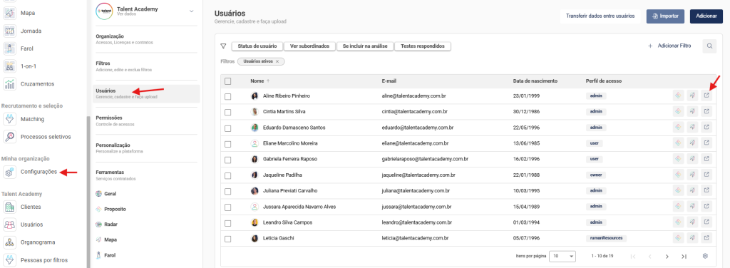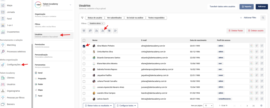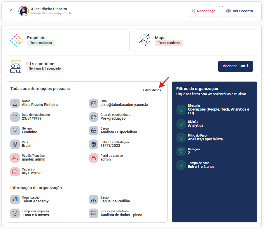 Agora para alterar o gestor de um usuário específico da organização, podemos utilizar dois caminhos: