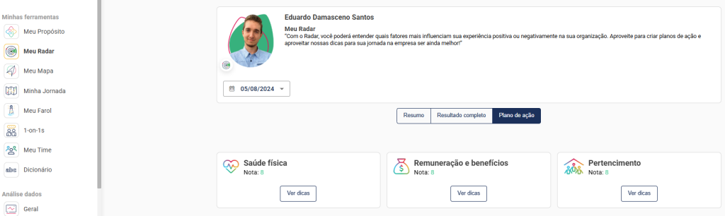 Para ter as dicas do Radar habilitada é necessário ter a parte de Planos de Ação do Radar habilitada também.